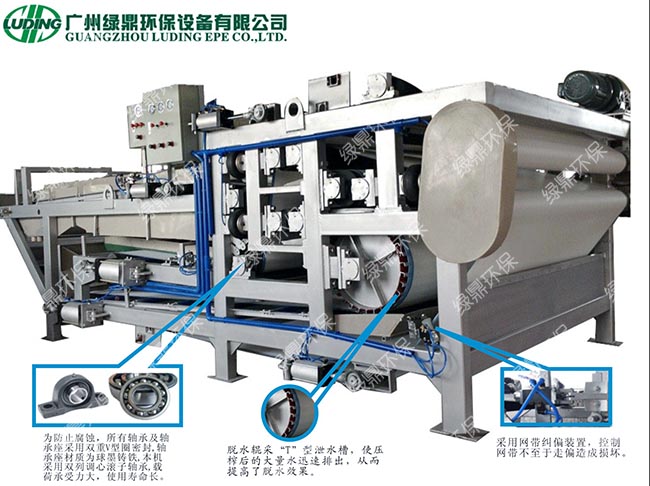 木薯渣固液分離設備技術特點:傳統的帶式固液分離設備以撐緊網帶對物料進行受力,對于污泥類還行,但是對木薯植物根渣類就行不通了,所以我們在原來的基礎上加上了對壓輥,以對壓的形式對物料進行對壓,效果顯倍增加。